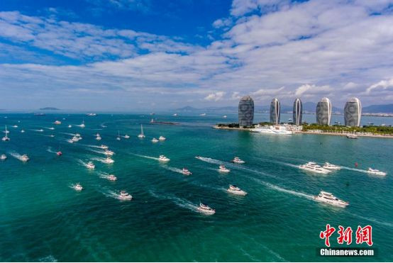 火热的三亚游艇旅游,游客乘坐游艇帆船出海感受海洋魅力。骆云飞摄
