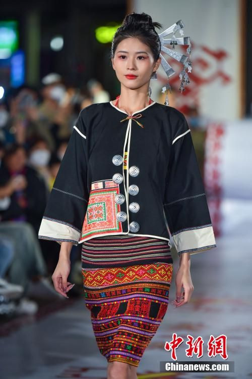 海南黎族传统织锦技艺焕发新生,走上国际舞台,图为模特展示黎锦服饰。骆云飞摄