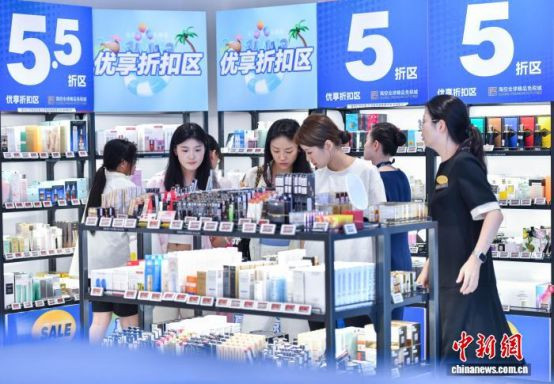 图为顾客在海口的海控全球精品免税城选购商品。骆云飞摄