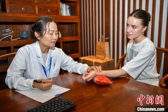 图为俄罗斯游客在博鳌一龄生命养护中心体验中医就诊。骆云飞摄